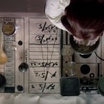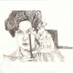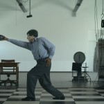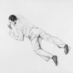 La sala principale della galleria è occupata dall’installazione formata da scaffalature metalliche e cartoni, contenitore, che evidenzia un rapporto fra interno ed esterno, in cui è proiettato Black and White Rule. Intorno a questo ingombrante muro, appesi alle pareti, i disegni che ritraggono uomini nell’atto di misurare lo spazio, con una forbice, con una lente di ingrandimento, con una matita. Nel video ritorna la misurazione che avviene attraverso il disegno, elemento quindi ricorrente che vari personaggi utilizzano, ognuno nella propria maniera: sono protagonisti principali un uomo, una donna, un bambino e un barboncino di cui si indicano le grandezze corporee, barboncino graficamente delineato in due opere esposte. Il disegno e il gesto del misurare fanno da collante ai lavori. Le azioni di mappatura che si svolgono sono ossessive e allo stesso tempo inducono ad una volontà di rappresentatività in cui la presenza umana richiama simbolicamente una ricerca di appartenenza ad un mondo in cui potrebbe essere contemplata anche l’assenza dell’uomo. “Tatort” che in tedesco vuol dire “scena del crimine” è stato il termine che ha ispirato l’artista per questo suo progetto, il significato che Zack attribuisce a tale parola si risolve nell’idea di uno spazio in cui succedono delle cose nel rapporto fra ciò che accade e ciò che si percepisce, fra gesti minuziosi indicativi di una realtà e ricerca di sospensione. Anche in Mother economy si assiste alla misurazione, questa volta di oggetti all’interno di una abitazione: essi rappresentano la famiglia latitante fisicamente ma presente nei sentimenti che questi oggetti hanno suscitato. La fine del video si svolge in cucina: la madre di famiglia prepara una torta di quelle economiche che verrà sezionata e, ovviamente, misurata.