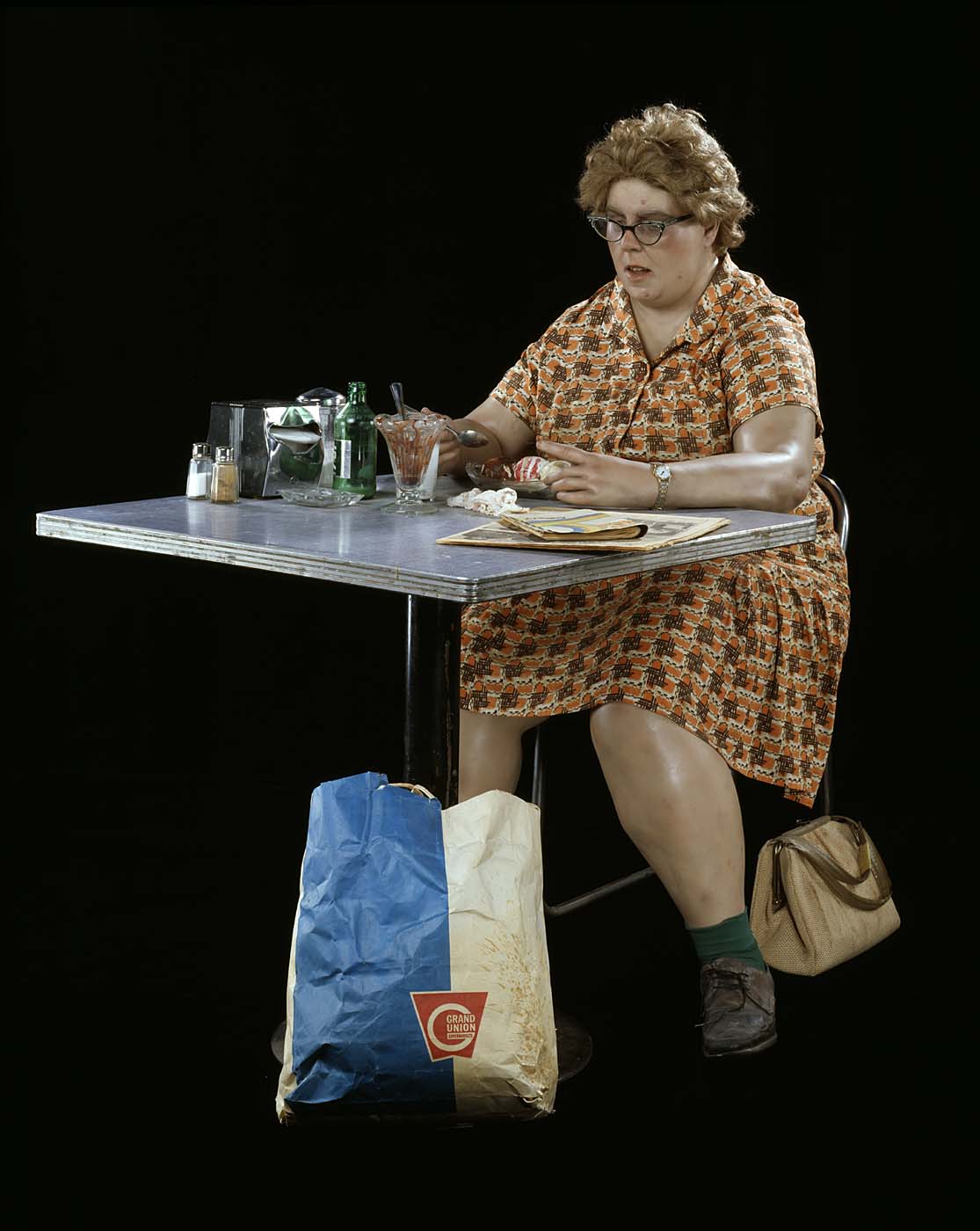 Non riproduco la vita, faccio una dichiarazione sui valori umani. La mia opera si occupa di persone che conducono un’esistenza di calma disperazione. Mostro il vuoto, la fatica, l’invecchiamento, la frustrazione. Queste persone non sanno reggere la competitività. Sono degli esclusi, degli esseri psicologicamente handicappati.” La gente è il soggetto principale di Duane Hanson. Le persone che riproduce nelle sue sculture costituiscono lo strumento attraverso cui comunicare il suo messaggio. Non sono individui specifici. Non sono personaggi speciali, quasi non si fanno notare, perché provengono dalle masse. Nel corso della sua vita Duane Hanson ha notato queste persone e il suo occhio allenato le ha spesso individuate ai margini della folla: ai margini, perché neppure le masse lasciavano loro uno spazio al centro, mentalmente o fisicamente. Per oltre trent’anni, questi perdenti nella vita, questi eroi della vita quotidiana hanno determinato l’attività artistica di Duane Hanson. L’artista ci ha lasciato un totale di 114 “sculture di vita”, alcune delle quali in numerose varianti e molte così realistiche che chiunque conosca la storia di Pigmalione narrata da Ovidio tenterebbe di infondervi la vita. Molti spettatori sono sconcertati da ciò che vedono e provano un misto di profonda emozione e ammirazione.