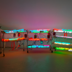Andrea Rosen ha puntato sul sicuro con Ryan Trecartin e le sue caotiche e coloratissime installazioni in bilico fra found objects e pittura. Buffa e simpatica l’installazione di Ed Fornieles da Carlos/Ishikawa gallery, non è di certo passata inosservata. Simpatico anche il lavoro di Aslı Çavuşoğlu per la sezione Frieze Projects che ha ricostruito una crime scene alla C.S.I.. La galleria The BReeders di Atene ha invece presentato Antonis Donef, autore di opere grafiche letteralmente cesellate su carta di giornale, una vera sorpresa. Ottima anche la prova di Franco Noero con Gabriel Kuri e Kirsten Pieroth sopra le righe. Hauser & Wirth ha portato in fiera una luminescente installazione di Jason Rhoades. Ci è piaciuta anche T293 di Napoli con il collettivo francese Claire Fontaine. La galleria Stevenson ha presentato invece il bravissimo scultore sud africano Nicholas Hlobo, talmente bravo che la Tate Gallery ha appena acquisito il suo “pezzo” in mostra, assieme ad altre opere, ve lo immaginate un museo italiano che compra le opere ad una fiera d’arte?