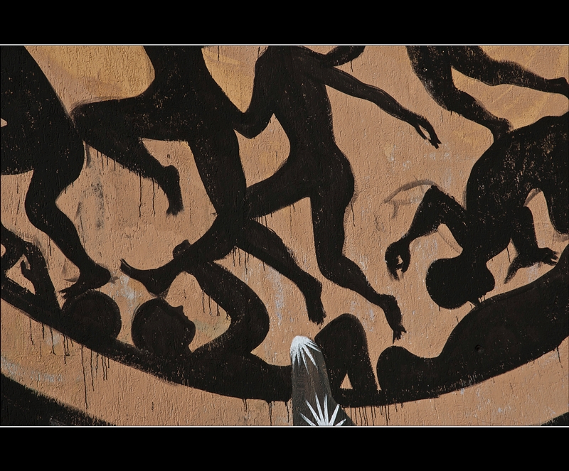 Borondo nasce a Valladolid in Spagna nel 1989. Nel 2011 arriva a Roma per frequentare l’Accademia di Belle Arti, dove si è subito imposto sulla scena della street-art. Egli realizza le sue opere principalmente nello spazio urbano, interagendo con le strutture architettoniche e superfici di ogni genere. Il suo personalissimo stile è basato su un uso misurato del colore con un evidente preferenza per il nero. Fulcro della sua poetica è l’introspezione umana rappresentata principalmente attraverso figure antropomorfe che esprimono, attraverso conturbanti pose, il loro carico emozionale accentuato da un’atmosfera malinconica che ritorna in tutti i suoi lavori. Membra allungate che si manifestano come fugaci presenze, fantasmi visibili solamente a chi, nonostante la frenesia della routine quotidiana, sa’ ancora coglierne la sensibilità in essi espressa. Info: http://borondo.blogspot.it/
