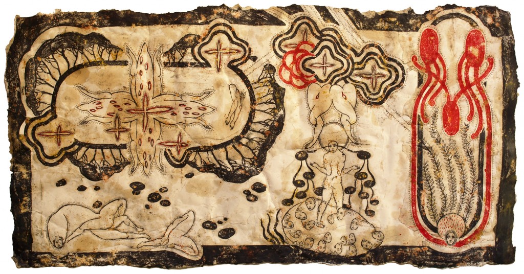 Addentrandoci all’interno delle mura del Castello c’imbattiamo nella Colata Room, spazio espositivo posto nel cortile e destinato ai giovani artisti, dove è presente l’installazione di Davide Monaldi ‘Io sono qui’. Bambini, modellati in ceramica e decorati attraverso varie modalità pittoriche, osservano lo spettatore che scruta l’interno della saletta generando in lui un senso di spaesamento fino a rendendolo partecipe della loro difficoltà di crescere e della paura di affrontare l’età adulta. Mentre, Graziano Russo con Bunker visit inaugura un nuovo ambiente del castello, le vecchie cucine, trasformandolo in uno spazio espositivo attraverso un’installazione che coinvolge direttamente il pubblico. Graziano ha rielaborato immagini di bunker improvvisati, dove per anni hanno vissuto personaggi noti della malavita calabrese prima di essere individuati ed arrestati. Scopo dell’opera è affermare che il male non è mai troppo lontano da noi stessi, che illegalità impunita è sempre supportata dalla complicità culturale, da costumi ed abitudini che rendono ammissibile ciò che in realtà non lo è.