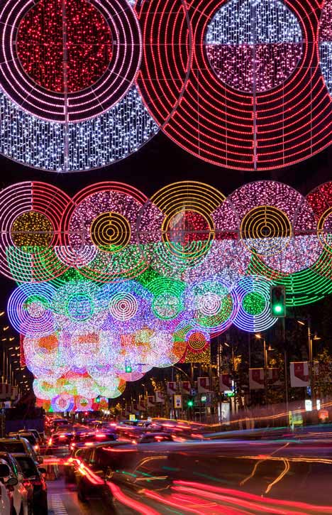 Anche a Madrid hanno deciso di montare le luminarie per Natale. Ovviamente la metropoli spagnola non poteva mettere in piedi dei festoni qualunque ed ha deciso di scegliere l’architetto italiano Teresa Sapey per le tanto amate lucine. La risposta del designer è stata una mega installazione luminosa costituita da neon multicolore…