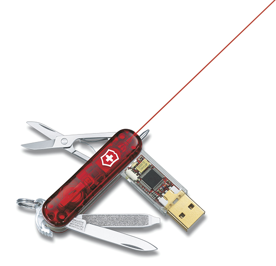 2 Victorinox – Ecco a voi il coltellino svizzero delle nuove generazioni, è dotato di penna usb e puntatore laser. $230 su Victorinox