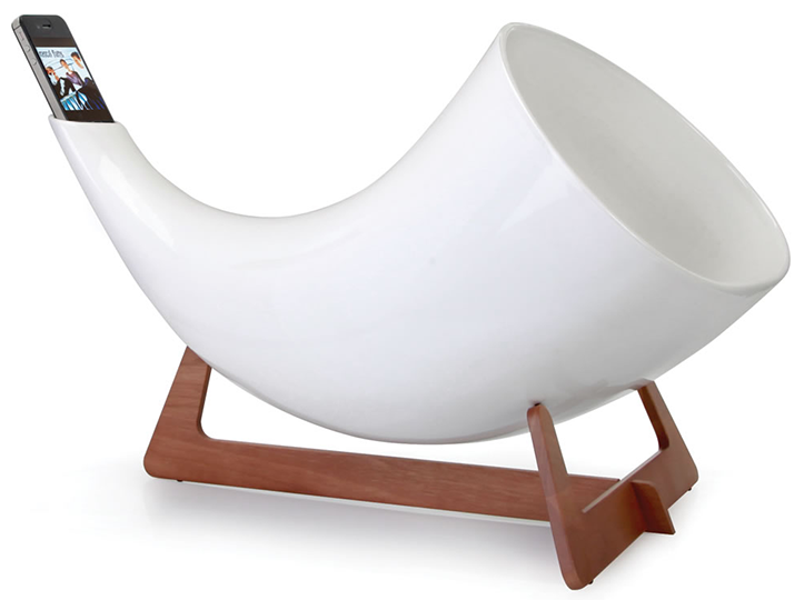 1 Megaphone – mitico corno in ceramica senza parti elettroniche. La magia è affidata all’acustica, basta inserire l’iPhone nella cornetta ed il suono verrà amplificato in maniera del tutto naturale. $330 su Hammacher Schlemmer…