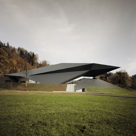 Avveniristica festival hall a Erl, in Austria, proggettata da Delugn Meissl. Vista da qui sembrerebbe un’astronave di Star Wars, ma i suoi interni sono una vera meraviglia di tecnica ed ingegneria…