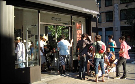 D’altronde il caro vecchio Guy Debord ci aveva già messo in guardia sulla deriva della società e dell’arte verso i lidi della mercificazione. Oggi volenti o nolenti ci troviamo di fronte ad un’arte contemporanea tesa al bisogno del cambiamento e della novità che realizza in termini l’espressione pura del cambiamento impossibile, un’arte che pur non riuscendoci deve essere necessariamente d’avanguardia mentre la sua vera avanguardia è la sua scomparsa. Così in Italia si tramutano i musei in cocktail bar ed in discoteche dove le opere svolgono il loro rassicurante ruolo d’arredo a corollario di una massa di parvenu danzerecci amanti del radical chic pensiero. Ed ancora si organizzano e si chiedono vernissage collettivi in modo da fare quadrato attorno ad un evento, come se l’evento stesso sia il fulcro della creatività artistica. Se è vero che il nostro paese è molto attento a quello che succede negli Stati Uniti, allora le ultime notizie provenienti dal nuovo continente non fanno certo sperare ad un ritorno al rigore estetico e filosofico. La Lyons Wier Gallery di New York ad esempio, ha inaugurato alcuni anni or sono una serie di mostre chiamate Art Bazaar (mai titolo fu più appropriato) dove i primi 20 artisti a presentarsi in galleria si guadagnano un posto per esporre.
