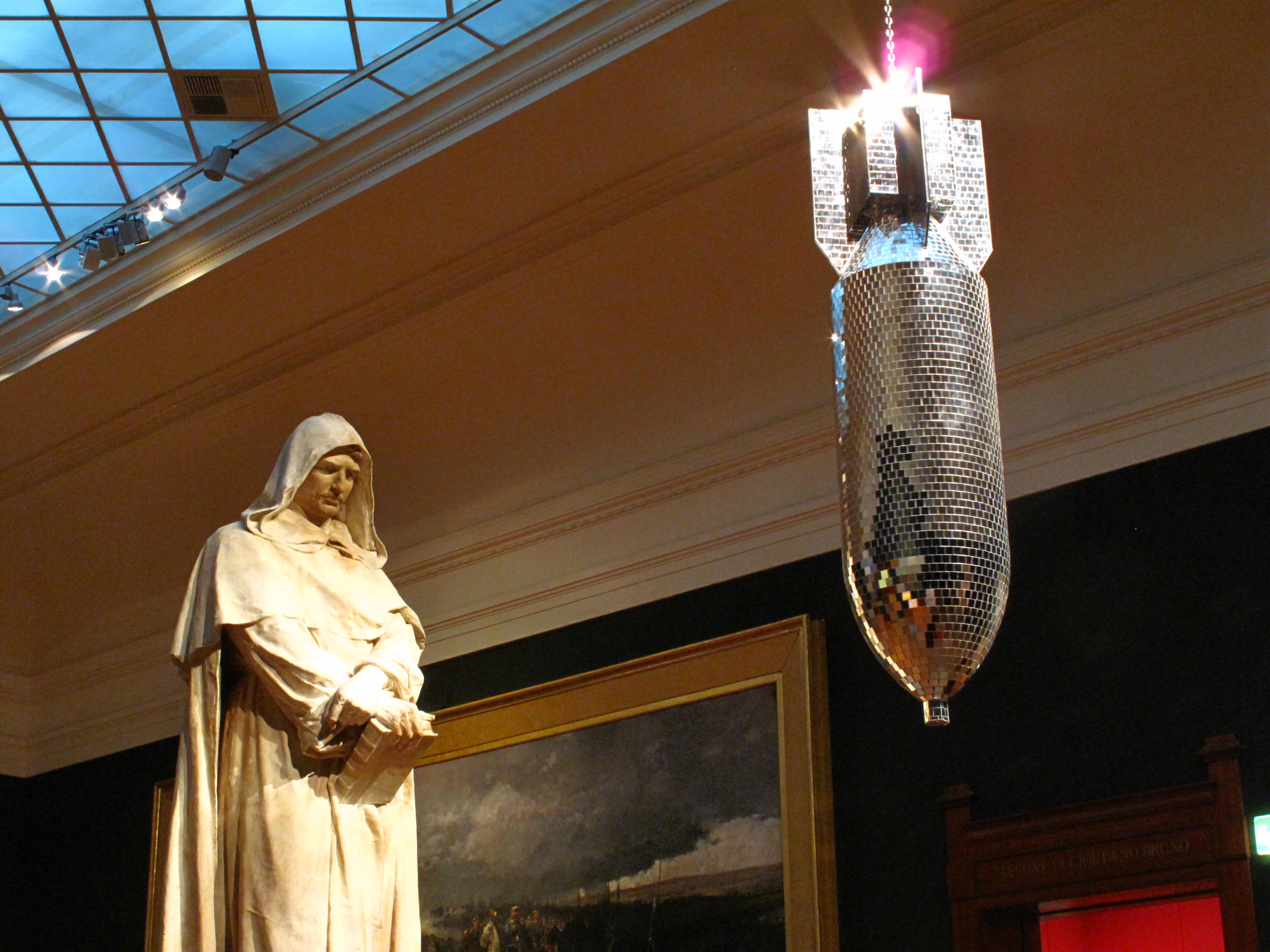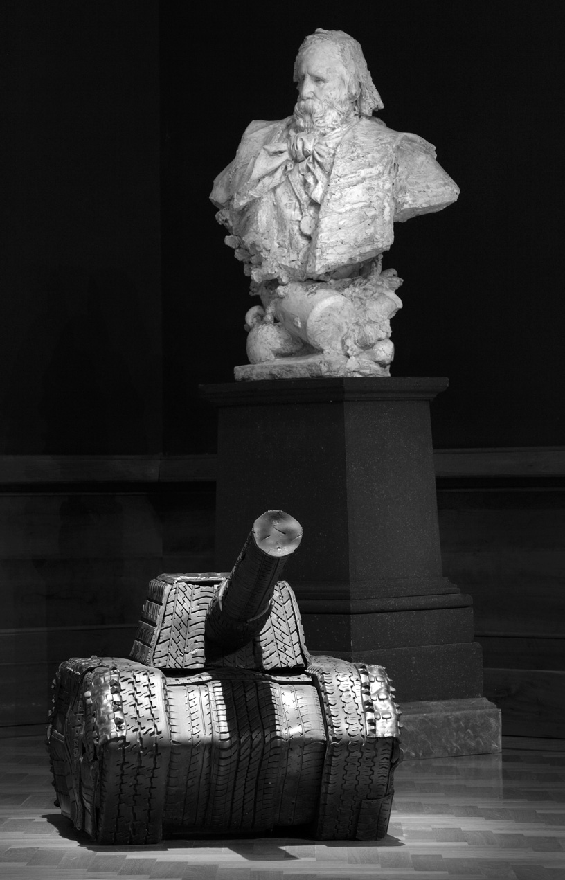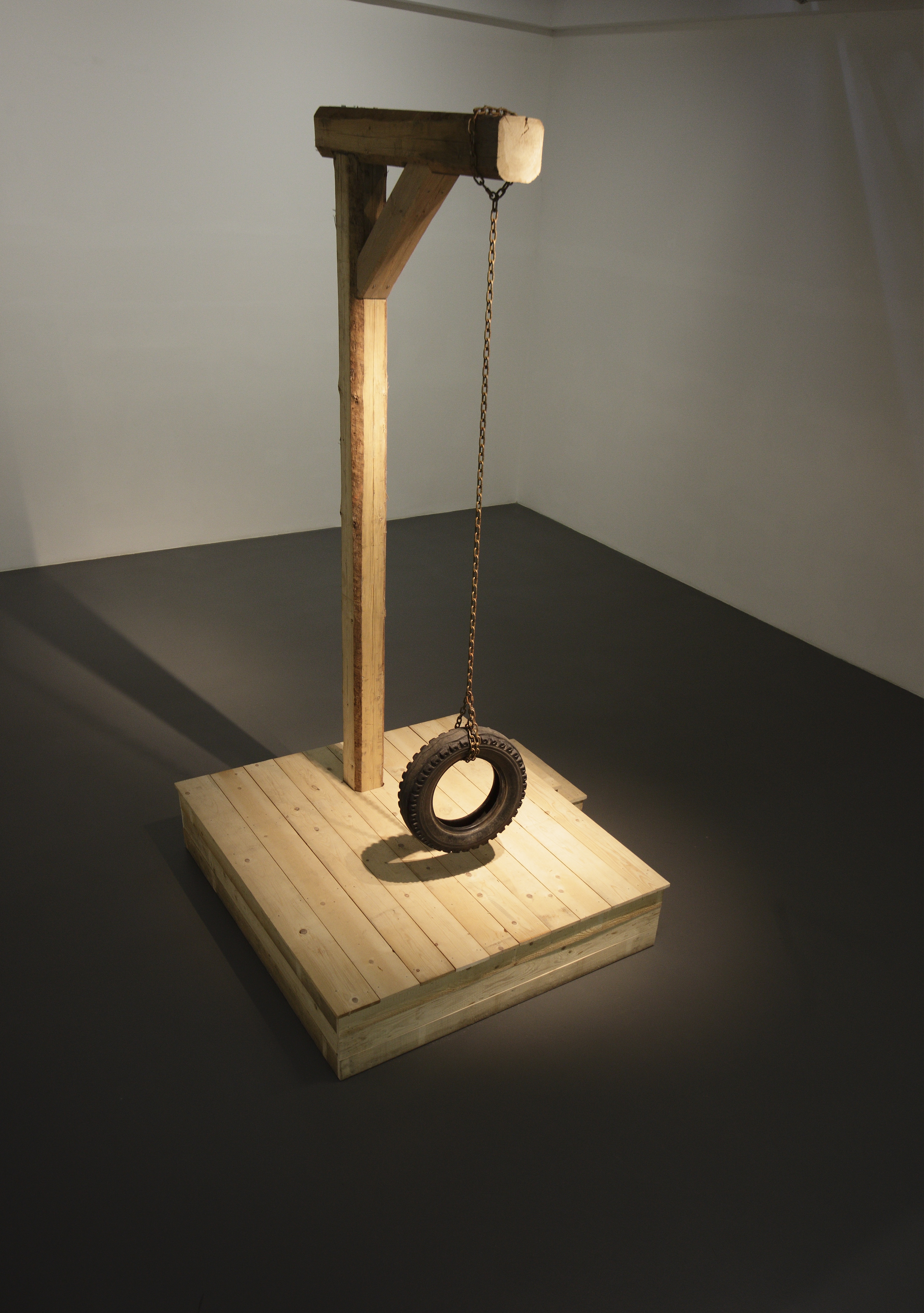 Paolo Canevari è uno degli artisti della sua generazione famosi a livello internazionale, noto per l’utilizzo di differenti materiali e media, quali animazione, disegno, video, scultura e installazioni. L’artista presenta simboli o luoghi comuni facilmente riconoscibili, al fine di commentare concetti quali la religione, i miti urbani della felicità o i grandi principi alla base della creazione e della distruzione. Partendo come scultore, l’artista tratta la sua opera come un modo per convertire lo stato passivo della mente in atto energetico, creativo. L’adozione del medium video è associata al desiderio di generare immagini che siano sì effimere ma anche di grande impatto visivo. Le sue recenti opere video possono essere viste come una forma di scultura effimera che rifiuta la retorica dei monumenti eterni. Il lavoro di Canevari è legato alla riflessione sull’impermanenza nell’arte, sul significato della scultura e su come questa si metta in relazione con il contesto sociale contemporaneo. Fin dai primi anni Novanta, l’artista adotta come materiale d’elezione la gomma delle camere d’aria e dei pneumatici e il colore nero, sviluppando un linguaggio personale teso alla rivisitazione del quotidiano e agli aspetti più intimi della memoria dove si sovrappongono simboli, icone, cultura pop, rappresentazione storica e coscienza politica. La sua opera appare come tra le attuali sintesi delle espressioni linguistiche maturate dagli anni Sessanta in poi e non conosce confini di genere spaziando dal disegno al video, dall’installazione alla performance.I materiali primari e semplici che compongono i suoi lavori, sono messi in rapporto con il concetto di rappresentazione e fungono da “chiavi” che permettono infinite possibilità di lettura. Allo stesso tempo, testimoniano la continua metamorfosi della materia la cui instabilità è sinonimo di apertura a diverse interpretazioni.