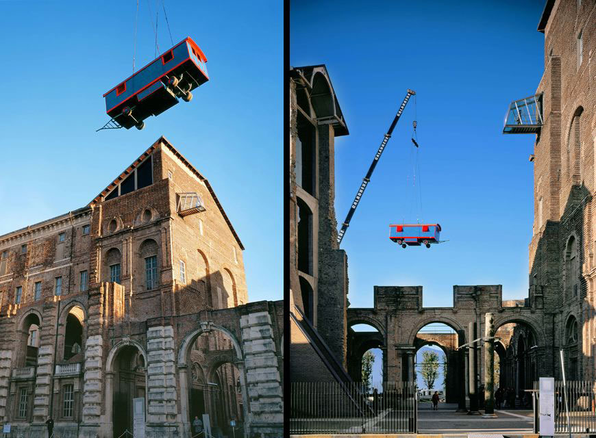 La ricerca di Lara Favaretto trova fonte di ispirazione nella dimensione della festa, attingendo a manifestazioni popolari quali il carnevale, il mondo del circo e quello delle giostre. Ogni opera dell’artista nasce dal desiderio di “regalare un giorno”, offrendo l’emozione di un tempo sospeso, separato dalla prevedibilità del quotidiano e, al contrario, allietato dalla possibilità del meraviglioso. Contemplando l’ipotesi di spostare il punto di vista sulla realtà, ciascun lavoro diventa così un dono attraverso il quale rendere tangibile l’ebbrezza di un mondo alla rovescia.
