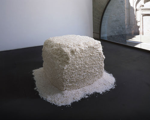 Talvolta usati dall’artista per performance o installazioni, i coriandoli diventano un inedito materiale scultoreo in Solo se sei mago, 2006. Allestita come un cubo regolare, in diretto riferimento all’esatta geometria minimalista, l’opera è però soggetta a continue mutazioni e possibili disfacimenti. In quanto unico componente, le migliaia di coriandoli bianchi che compongono l’opera, restano disposti nella forma suggerita dall’artista per un lasso di tempo variabile, ma tendono a soggiacere alle leggi dell’entropia. Invito o sfida, il titolo del lavoro è intenzionalmente diretto a ciascun visitatore. L’opera diventa così l’oggetto di un dialogo che l’artista inizia e al quale è possibile rispondere cercando di analizzare la magia che regola il comportamento degli effimeri dischetti di carta e il significato di un gesto artistico che accetta di essere compromesso da un semplice soffio d’aria.