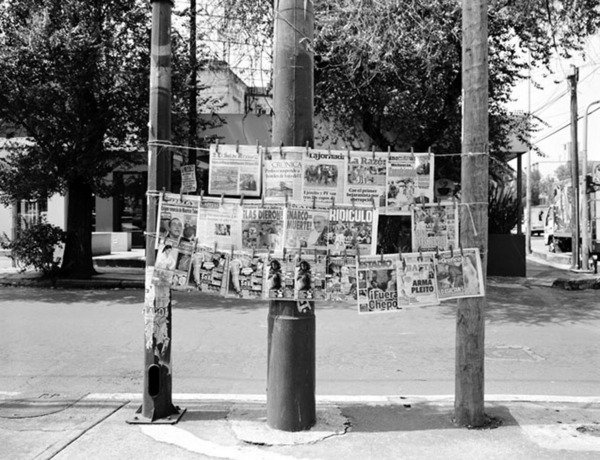 Il tempo sfasato da un insieme di fotografie di riviste e giornali, raffigurate come recenti ma datate, e’ il soggetto dei suoi nuovi lavori. Immagini in b/n realizzate in varie citta’ che evidenziano contesti sociali, politici e culturali.