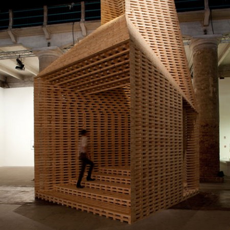 Gli architetti O’Donnell + Tuomey hanno progettato questa camera di legno a forma di fornace per le corderie dell’Arsenale