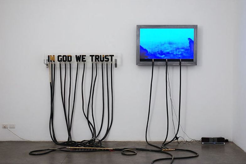 Il linguaggio e la tecnica caratteristici dell’artista – l’utilizzo del petrolio e dei sistemi idraulici che ne attuano la circolazione, dai compressori alle sculture “simulacro” vuote in resina acrilica – per SINCERE si articolano in una serie di tele di grandi dimensioni realizzate con la penna biro, di sculture di tubi di neon e petrolio e di disegni preparatori per grandi installazioni.