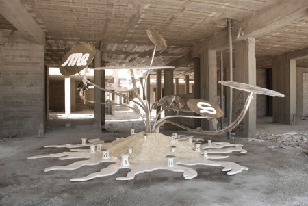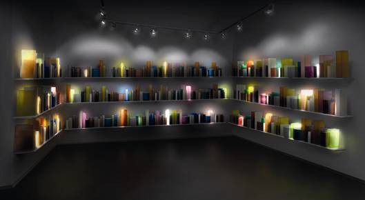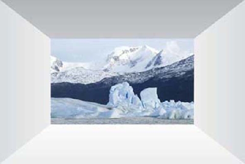 La serie di immagini, che si rivelano per quello che sono -monocromi/paesaggi – solo a un occhio paziente e “ripulito”, si inscrive in cornici “barocche”, molto evidenti e “ingombranti”, realizzate in gesso dello stesso colore di base dell’immagine incorniciata, bianco, azzurro, rosso e oro. Il tema del fuoco, dell’aria del ghiaccio e dei deserti, che si mostra nelle opere attraverso la simbologia del colore, è inteso non in maniera colta ma elementare: sono la matrice del diluvio di immagini a cui siamo sottoposti ogni giorno e sono la base per la costituzione del mondo visibile. Diverse interpretazioni dei quattro elementi sviluppano differenti linguaggi, distinguono dalla radice diverse culture, raccontano la nostra storia ma anche la preistoria.