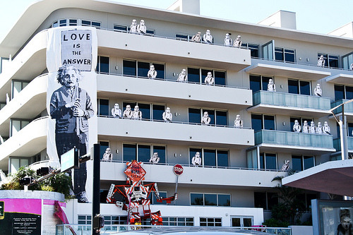 Chi ha visto il documentario sa già che Mr. Brainwash non si separa mai dalla sua videocamera, che ha seguito per anni i più grandi street artists del mondo ed in seguito ha fagocitato le loro estetiche per poi mixarle nelle proprie opere. Mr. Brainwash si è inventato artista e nel 2008 ha prodotto ed organizzato una mostra titanica dal titolo Life is Beautiful in un magazzino abbandonato di Los Angeles. La mostra è stata un successo ma Guetta vi aveva puntato tutti i suoi risparmi, tutto (anche la casa) sulla sua prima faraonica mostra. Ed ora le fatiche di Mr.Brainwash sono state ripagate, l’uomo che si è autoproclamato artista ha beffato anche il mercato raggiungendo quotazioni record (120.000 dollari) per alcune delle sue opere all’asta che di fatto triplicano le stime previste.