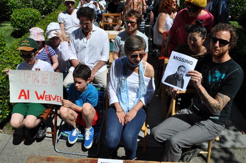 Il mondo della creatività (e non solo) è però stanco di queste assurde macchinazioni e lo ha dimostrato ancora una volta con grande fermezza. Proprio domenica scorsa si è svolta infatti una giornata di protesta internazionale denominata Creative Time, l’appuntamento simultaneo è riuscito a coinvolgere un folto drappello di attivisti sparsi per tutto il mondo. A New York 200 persone si sono assiepate davanti al consolato cinese, sedendosi su delle sedie proprio come la celebre performance Fairytale: 1001 Qing Dynasty Wooden Chairs, eseguita da Wewei nel corso di Documenta 12 a Kassel nel 2007. L