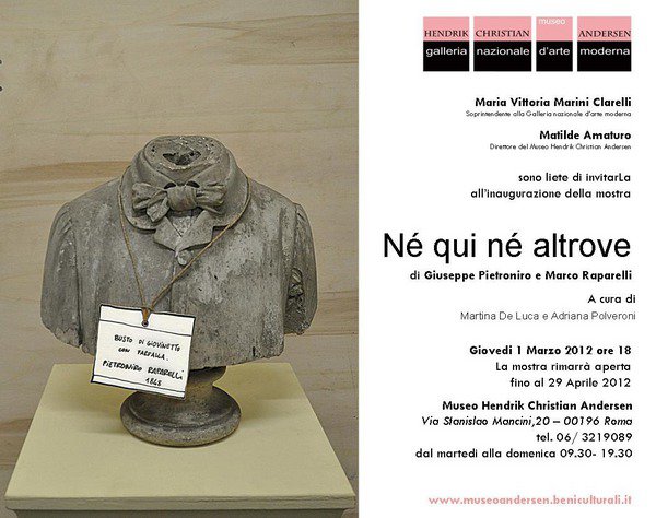 Il progetto a quattro mani di Giuseppe Pietroniro e Marco Raparelli “ Né qui né altrove” in visione al Museo Hendrik Christian Andersen , ha per oggetto il museo: non solo l’istituzione storico – culturale, ma il museo quale è oggi, al tempo della crisi.
