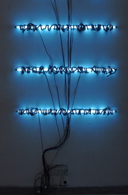 Quella di Alberto Di Fabio è un’arte che si nutre di “natura”, e la pittura la interpreta, accecante nel colore giallo delle pareti di Edicola Notte. In questo lavoro la pittura trova la sua vicinanza con l’uomo e la parte di divino propria all’umano. “Particella di Dio” abbaglia e penetra la vista fino a toccare i punti nevralgici del sentire. Una partitura neuronale che ricorda i rami di un albero e che unisce così due lati del biologico, per trascenderli ed elevarli. Scienza che influenza la creazione artistica andando a stabilire un rapporto fra il microcosmo e macrocosmo, fra cellule e Universo, nel ricordo degli esperimenti che, grazie alle nuove scoperte scientifiche, cercano di individuare la massa delle particelle, a partire proprio dalla “Particella di Dio”.