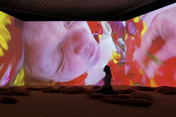 A me gli occhi, a me il corpo. Porgo le dita ed i polpastrelli sulle palpebre dei miei occhi stanchi e inizio a massaggiarli lentamente con moti rotatori. La mente inizia a rilassarsi, i muscoli del viso si distendono, accenno un sorriso. Tutto intorno il buio totale m’illumina dentro. Ecco ci sono: io con tutta me stessa, insieme, dentro e fuori. Questi due mondi sono finalmente entrati in contatto. Apro gli occhi e scopro cosa mi ha indotto a vivere questa fantastica esperienza. Sono all’interno dell’Hayward Gallery. Ho di fronte a me i poemi audiovisivi di Pipillotti Rist: trenta lavori dagli anni ’80 fino ad oggi.