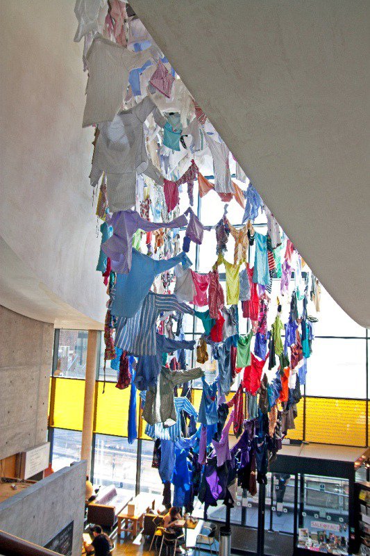 TOWARDS TOMORROW è composta da vestiti da bambini di diversi colori e fogge, raccolti grazie a un progetto realizzato con le famiglie della città; in questo modo ogni persona che ha donato un indumento, con tutto il bagaglio di ricordi legati a esso, farà idealmente parte dell’opera. Questa grande vela multicolore si muoverà con il vento, riempiendo i vuoti e rimodellando il profilo sinuoso dell’edificio di Zaha Hadid. “Ho realizzato moltissime installazioni e opere, creando spazio con lo spazio – dice Kaarina Kaikkonen – Attraverso il mio lavoro cerco di comprendere meglio me stessa e di capire dove finisce il dentro e comincia il fuori”.