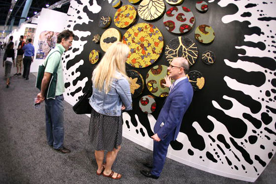 Blum & Poe ha inoltre venduto due dipinti di Carroll Dunham per 150.000 dollari al pezzo come anche alcuni dipinti di Mark Grotjahn ceduti per 90.000 dollari l’uno. Anche la galleria Emmanuel Perrotin ha venduto un’opera di Murakami, si tratta di una scultura dal titolo Yume Lion, ceduta ad un collezionista europeo per 1.3 milioni di dollari. Perrotin ha ceduto anche l’opera Rocks di Tatiana Trouve per 90.000 euro.