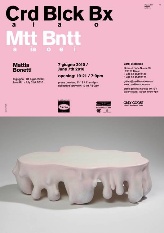 Lunedi’ 7 giugno Cardi Black Box presenterà un particolare progetto espositivo: una mostra interamente dedicata al design, nell’ottica sempre piu’ attuale delle contaminazioni tra l’arte contemporanea e le altre discipline creative. Un progetto di respiro internazionale che vede per la prima volta in Italia l’allestimento di una personale dell’artista-designer svizzero Mattia Bonetti con un’ampia selezione di lavori in edizione limitata. Mattia Bonetti disegna mobili fantastici, nell’accezione piu’ classica del termine: fantastico, che riguarda la fantasia, l’immaginazione, l’inusuale, cio’ che e’ fuori della realtà, cio’ che appartiene a un’altra dimensione.
