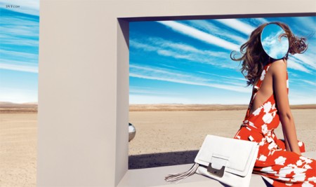 Già perché questo cartellone pubblicitario fa parte della nuova campagna primavera-estate del noto fashion brand Diane Von Fursenberg. Ad un’accurata analisi della scena è possibile scorgere sullo sfondo (cielo, paesaggio desertico ed elemento architettonico) grandi rimandi a Salvador Dalì mentre la sfera che si intravede sembra proprio una creazione di René Magritte. Passando al soggetto principale le cose non cambiano, l’ovale della modella in primo piano chiama nuovamente in causa René Magritte anche se a guardarla bene quella superficie specchiante sembra esser scopiazzata dall’inquietante figura in nero che compare in Meshes of The Afternoon, capolavoro di surrealismo in pellicola della grande Maya Deren, una delle più grandi esponenti del cinema sperimentale nonché pioniera della video arte.