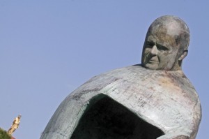 Dopo la triste notizia delle dimissioni di Luca Massimo Barbero dal MACRO di Roma pensavamo di aver definitivamente toccato il fondo per quanto riguarda la degenerazione del sistema artistico romano. Invece, come si suol dire, al peggio non c’è mai fine ed ecco allora che Roma torna a stupirci con un episodio di malarte contemporanea che francamente ci ha gettato nel più tremendo sconforto. Parliamo quindi della statua dedicata a Papa Wojtyla, creata dallo scultore Oliviero Rainaldi ed inaugurata alla stazione Termini con tanto di Gianni Alemanno in prima fila.