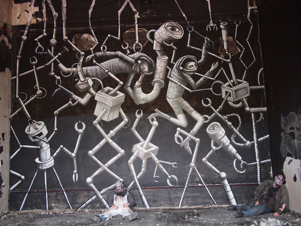 L’artista “mascherato” ha quindi trasformato i combattenti caduti per la patria in una pittoresca banda di supereroi affiancati da icone della cultura pop. Babbo Natale, il Joker, il pagliaccio di McDonald (Roland McDonald n.d.r.) e Capitan America sono solo alcuni dei coloratissimi personaggi creati da questo nuovo street artist che di fatto ha ridipinto i costumi sopra le statue.