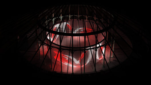 Questa volta il grande designer di origini israeliane ha creato una grande installazione alla Roundhouse di Londra, un ex officina di motori a vapore trasformata oggi in spazio espositivo multi-disciplinare. L’opera in questione prende il nome di Curtain Call ed è appunto un enorme tenda circolare di 18 metri di diametro che funge da telo per proiezioni. Su questo enorme schermo vengono proiettati video di artisti invitati da Arad, che per l’occasione si è trasformato in una sorta di curatore d’arte.