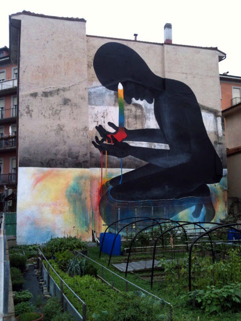 Nella capitale la fine dell’estate ha coinciso con la conclusione della terza edizione di OUTDOOR 2012 – Festival dell’Urban Art, un progetto di NU Factory, a cura dell’ex writer romano Simone Pallotta. Scopo ultimo della manifestazione è lasciare una traccia permanente nel costume, nelle abitudini e nel modo di vivere le aree urbane attraverso una serie di interventi artistici ed attività culturali. Per l’occasione sono stati coinvolti ben quattro street artist internazionali che si sono avvicendati, da luglio a settembre, per dipingere murales di grandi dimensioni in altrettanti siti dello storico e popolare quartiere Ostiense.