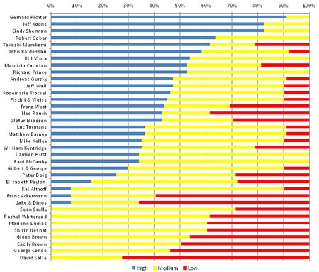 Partiamo (purtroppo) parlando di un artista italiano, vale a dire il nostro mitico Alighiero Boetti. Nell’ottobre del 2011 la casa d’aste Bonhams di Londra ha messo all’asta l’opera Anno del 1984. La base d’asta era tra i 2 milioni e i 2.8 milioni di dollari. Morale della favola la grande composizione di Boetti non ha ricevuto nessuna offerta ed è rimasta invenduta.