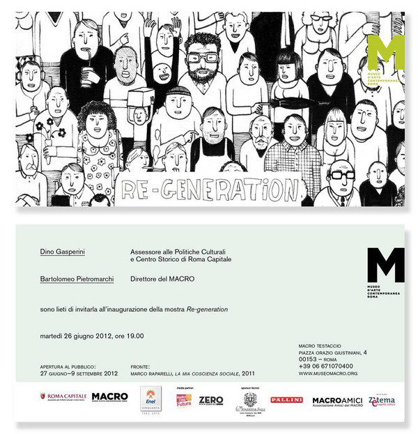 Re-generation, è la grande collettiva che presenta più di cinquanta degli artisti che contribuiscono — o hanno contribuito in anni recenti — a rinnovare il fermento artistico e culturale romano, sostenuti dai nuovi musei, fondazioni e gallerie che richiamano in città critici, curatori e altre figure chiave del settore, riposizionando così la capitale sulla mappa del circuito dell’arte contemporanea internazionale.