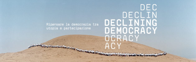 La mostra Declining Democracy, che inaugura al Centro di Cultura Contemporanea Strozzina (CCCS) di Firenze giovedì 22 settembre, propone una riflessione critica nata dal confronto con l’attuale situazione internazionale. Se nei paesi occidentali la crisi finanziaria del 2008 ha prodotto un profondo malcontento sociale, portando a una crisi di fiducia e di credibilità dei valori democratici, nei paesi del Nord Africa o del Medio Oriente sembra aver preso spazio un nuovo senso di utopia politica rivoluzionaria, diversa ma apparentemente parallela al fenomeno europeo, in cui molti gruppi di cittadini stanno combattendo per la conquista di fondamentali valori di partecipazione politica.