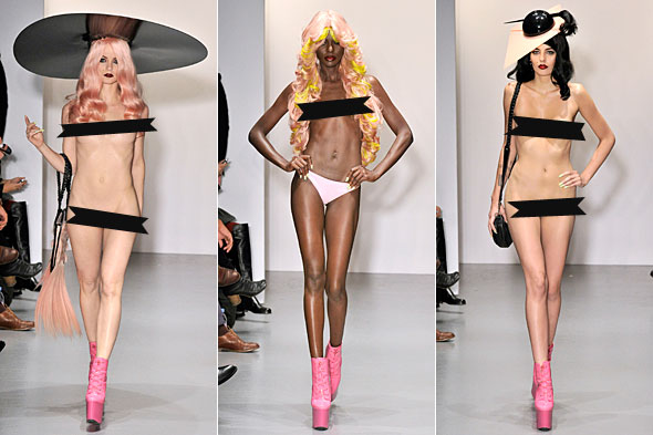 La London Fashion Week, inaugurato lo scorso 17 settembre è entrata nel vivo dell’azione e fra i tanti celebri brands in passerella, uno in particolare ha destato grande scalpore per l’audacia della sua collezione. Si tratta di Charlie Le Mindu, stilista francese nonché pupillo di Lady Gaga che non ha esitato nemmeno un secondo a far sfilare le sue modelle completamente nude tranne borsa, cappello, scarpe rosa e fluo ed altri accessori. Ovviamente quella di Le Mindu non è stata una mossa sperimentale ma una vera e propria strategia di mercato visto che il nome del brand era pressoché sconosciuto prima della sfilata mentre in questi giorni la notizia delle modelle in costume adamitico ha fatto il giro del mondo.