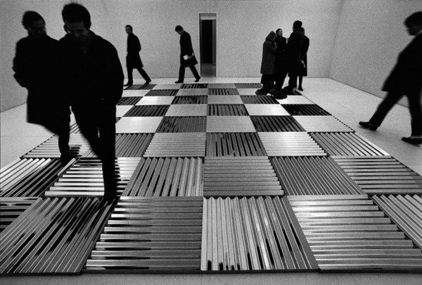 Le inaugurazioni delle Biennali, il pubblico dei grandi musei francesi, russi e tedeschi (1959-60), l’invasione delle opere nelle strade e nelle piazze di Spoleto per la mostra Sculture nella città (1962) sono esempi di una visione critica che porta Mulas a leggere le trasformazioni delle esposizioni negli anni Sessanta. Dal 1964 iniziano i viaggi negli Stati Uniti, dove Mulas coglie l’atmosfera delle gallerie e delle case dei collezionisti americani, accompagna Marcel Duchamp a rivedere le sue opere nelle sale del MoMA e racconta l’inaugurazione della personale di Alexander Calder al Guggenheim (1964). La Biennale del ‘68 segna la fine di una stagione, la crisi delle istituzioni museali, la critica al collezionismo e alla privatizzazione dell’arte.