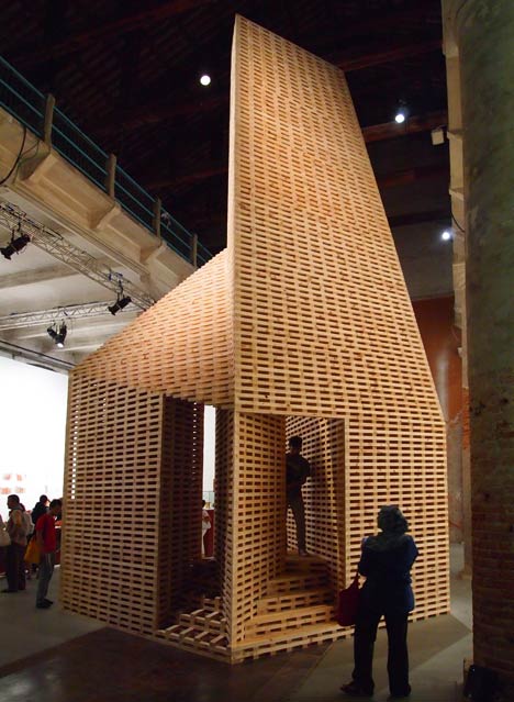 Gli architetti O’Donnell + Tuomey hanno progettato questa camera di legno a forma di fornace per le corderie dell’Arsenale