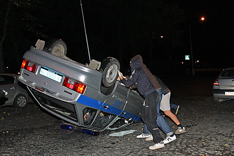 I Voina incendiano un automezzo della polizia e sconfinano nel teppismo