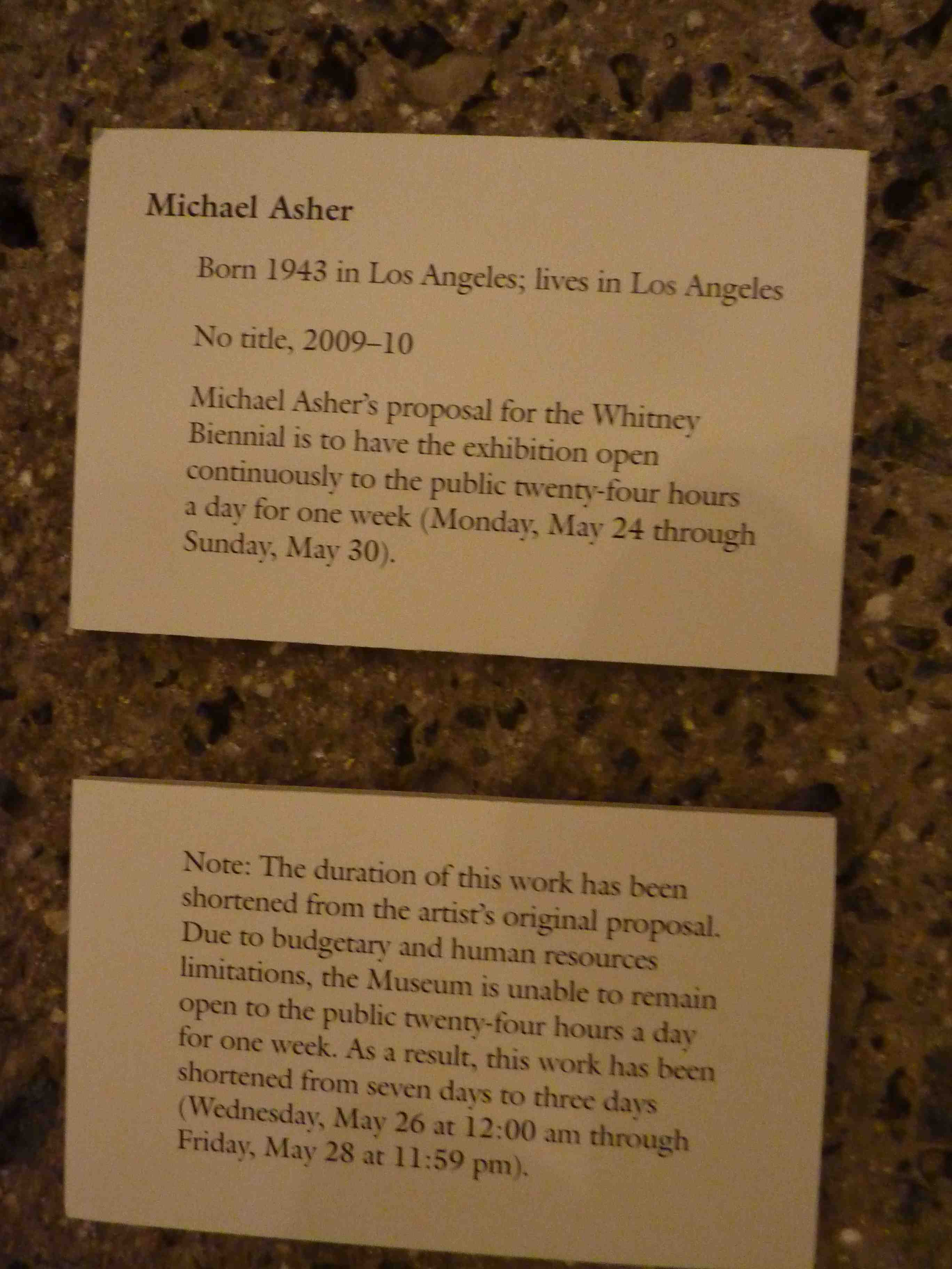 A curare la Biennial sarà il duo formato da Elisabeth Sussman e Jay Sanders, ex direttore della Greene Naftali Gallery di New York, praticamente un vero volpone del mercato che ha già organizzato molte mostre di successo. Il duo ha operato una scelta – non scelta visto che gli artisti partecipanti sono addirittura 51, segno evidente che il minestrone/padiglione Italia di Vittorione Nazionale© ha fatto scuola. Ma vediamo chi parteciperà alla Whitney Biennial 2012: