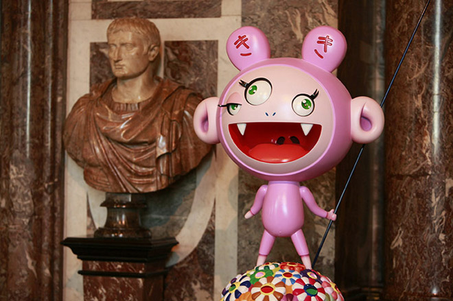 La reggia di Versailles fatica a contenere l’incredibile estrosità di Takashi Murakami (in mostra fino al prossimo 12 dicembre), presentatosi a Parigi in una veste più castigata del normale che non gli ha comunque evitato un vespaio di polemiche. Più di 12.000 firme sono infatti state raccolte da due differenti gruppi di protesta per fermare la mostra di Murakami che ha così battuto il record di polemiche dell’evento di Jeff Koons nel 2008.