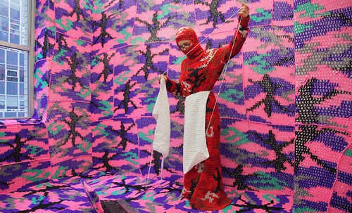Gli artisti che si cimentano in questa caleidoscopica tecnica non fanno altro che tessere delle trame attorno alle opere pubbliche e quanto altro. Lo scorso anno Olek era stata al centro di una sfortunata vicenda giudiziaria. L’incidente è avvenuto a Londra nell’ottobre del 2011, mentre l’artista era impegnata nella city per donare un’opera a fini umanitari. Proprio in quella fatidica data Olek è stata arrestata e trattenuta per due giorni in cella in attesa di un giudice. Inoltre il passaporto polacco le è stato confiscato e solo dopo il pagamento di una cauzione l’artista è ritornata in libertà.